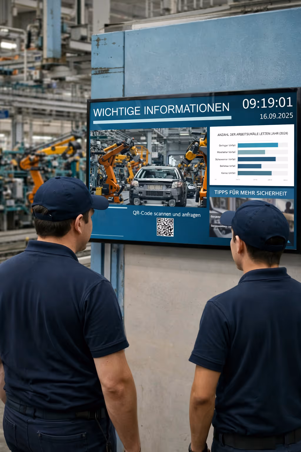 Digital Signage für die Industrie – Informationen sichtbar machen, Prozesse optimieren, Sicherheit erhöhen.